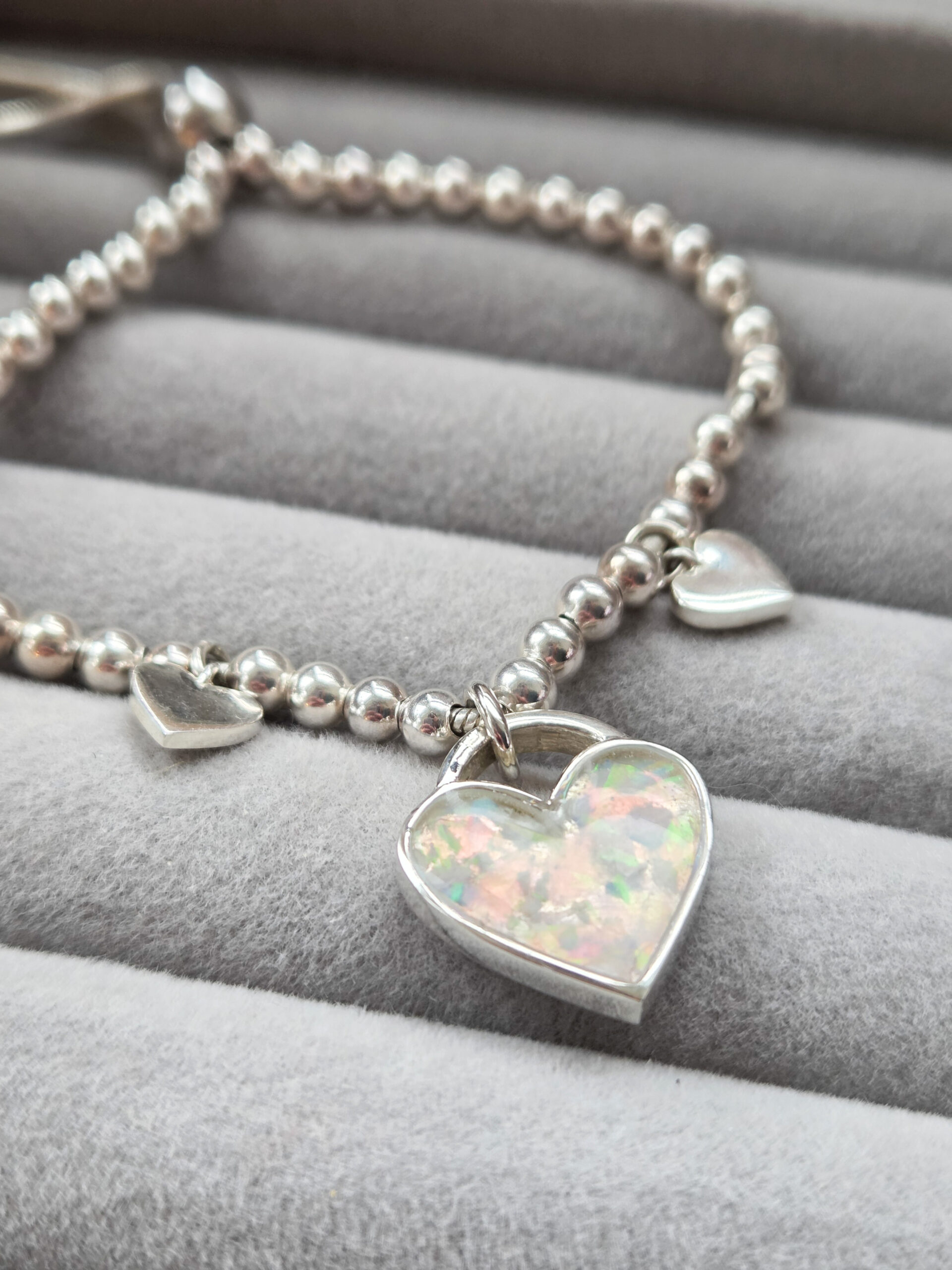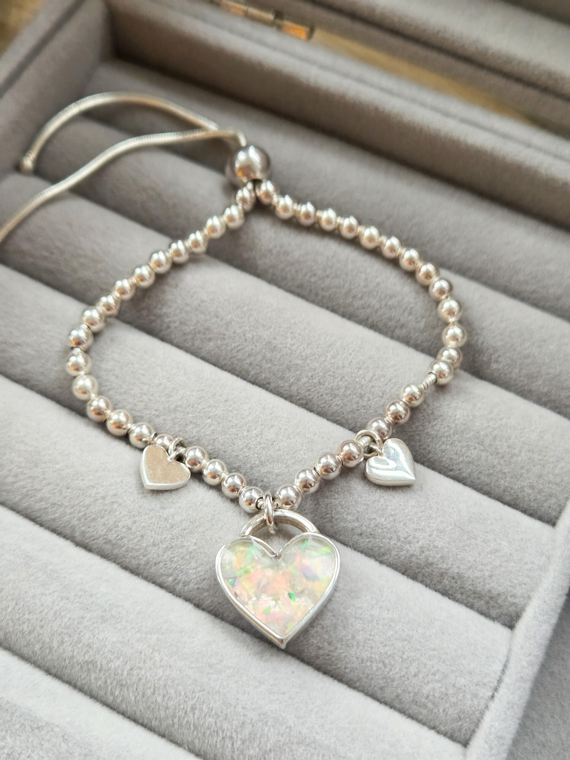 Carry the special memories of your loved ones with you at all times by placing their ashes or hair into this beautiful and bespoke bracelet. Beautifully hand made sterling silver bracelet with a middle heart settings where the ashes or hair of your loved ones will be carefully encased forever.